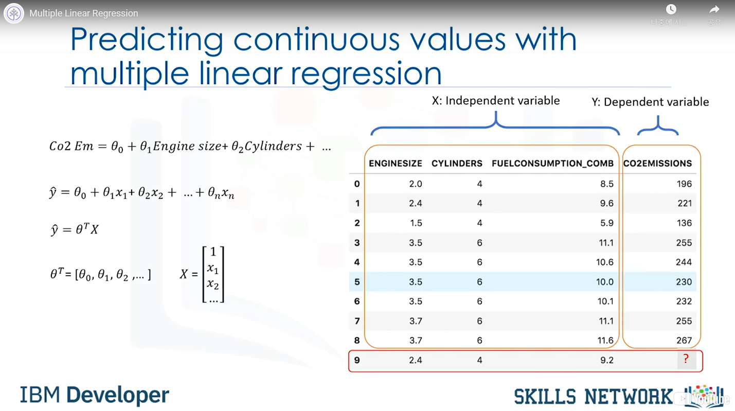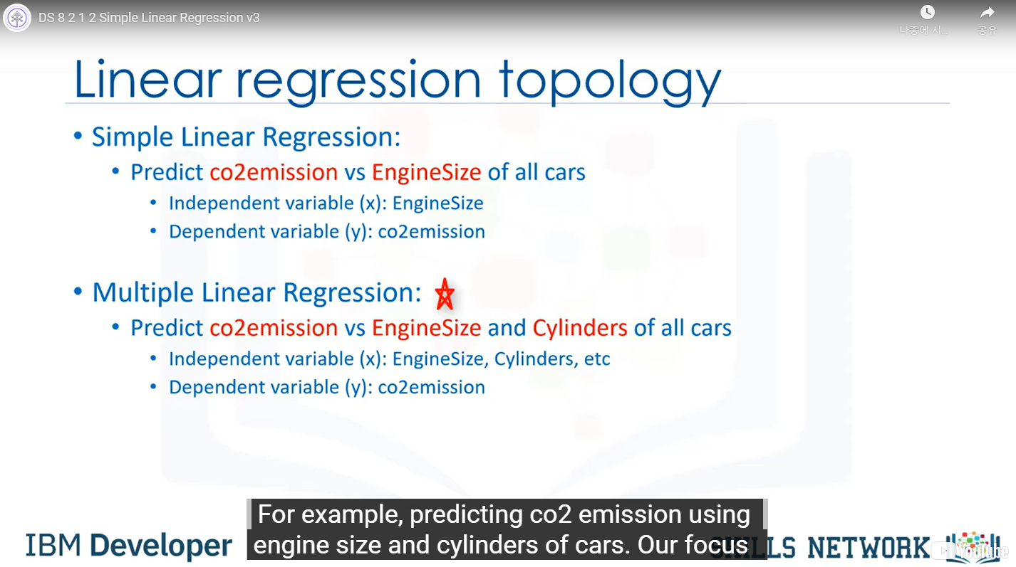 For example, it's to predict Co2emission vs EngineSize and Cylinders of all cars. 쉽게 말해 독립변수 여럿과 종속변수 하나와의 관계를 밝혀내는 모델