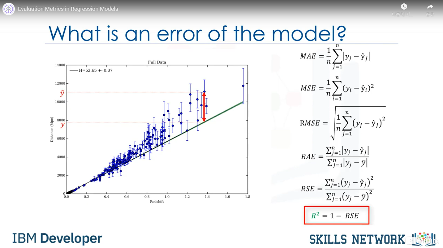 The difference between Actual value and Predicted value. 에러는 어떤 type의 모델을 선정하는지에 따라서 달라진다.